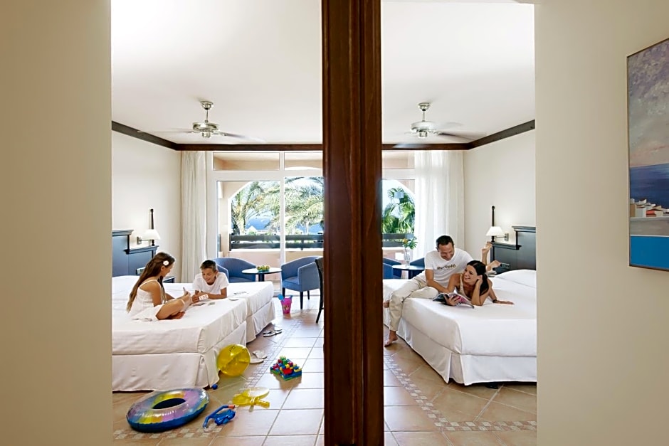 Made up of 2 interconnecting rooms, each with a bathroom, this family room is air conditioned and has satellite TV and a private balcony or terrace with sea views.